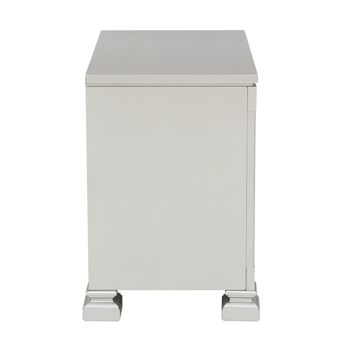 Smooth and radiant, the silver tone enhances the nightstand’s luxe appeal and pairs well with a variety of bedding styles.